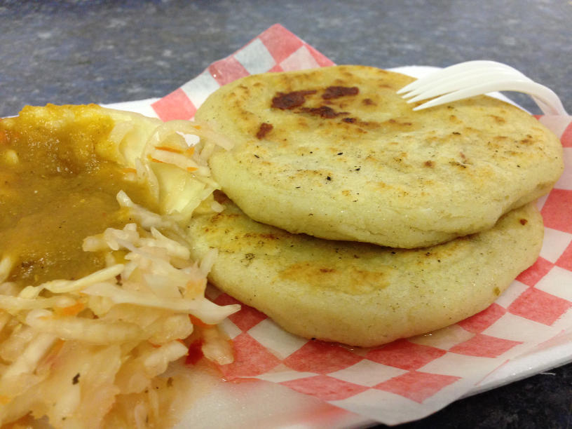 But have faith, friends. Walk up the steps and you’ll meet smiling, warm women who will make delicious pupusas for you (a thick corn tortilla filled with cheese, beans and meat). They come with a side of pickled cabbage and hot sauce for an extra kick. This place is truly a hidden gem!